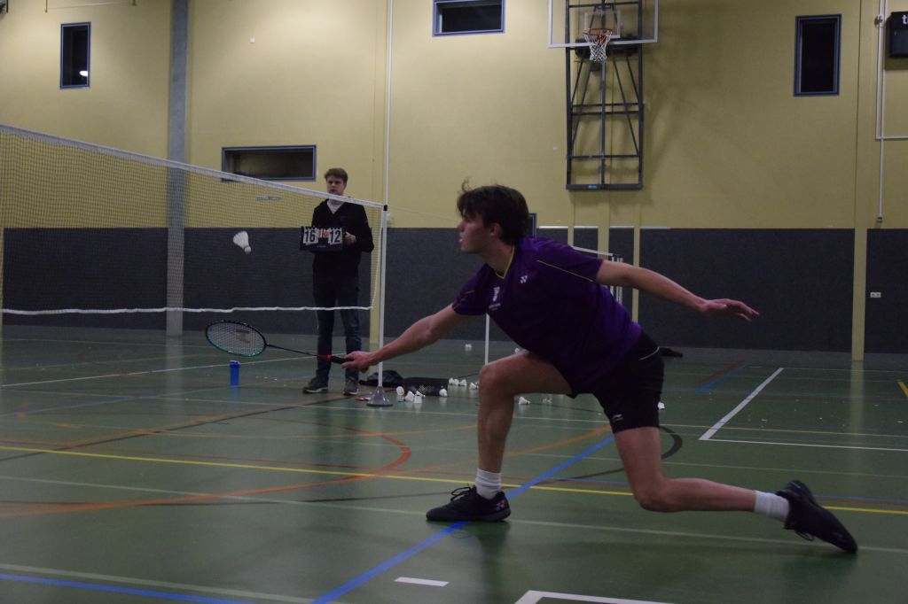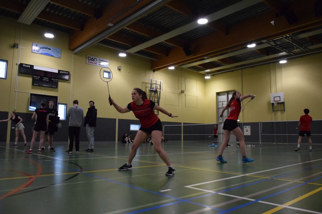 Op zaterdag om 8:00 waren de vrijwilligers al aanwezig om alles op te zetten en de zalen te versieren. De commissie was zo lief om voor ons allerlei baksels te maken, dus we konden met een goedgevulde maag aan de slag. Om 9:00 begonnen dan de eerste wedstrijden. Er werd bij ons toernooi gespeeld in de categorieën 3, 6 en 8. De hele dag lang werden er wedstrijden gespeeld in onze 2 zalen. Het toernooi verliep verrassend soepel. We liepen de hele dag op schema, zelfs een klein beetje voor op schema, iets wat ongekend is voor een badmintontoernooi.