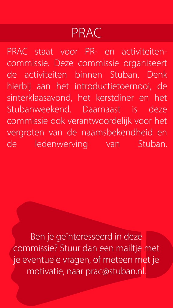 Deel worden van een commissie is een leuke manier om je steentje bij te dragen bij Stuban en ook nog eens nieuwe Stubanezen te leren kennen!